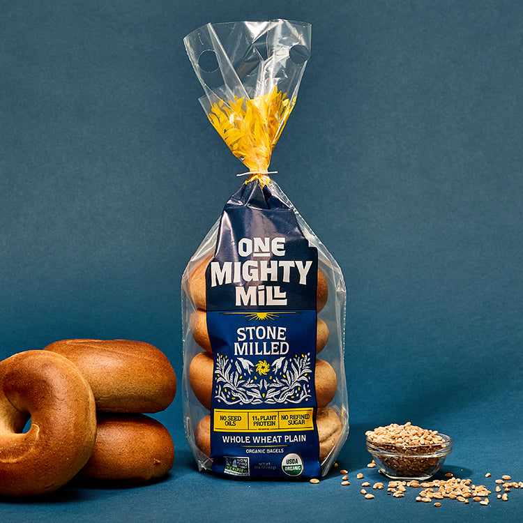 We're bringing back the healthy, wholesome flour of the past. We start with organic wheat grown by our farmers, then stone-mill it at our local mills. Fresh-milling keeps all the healthy fiber, protein, minerals, and vitamins in a way that factory flour doesn't.